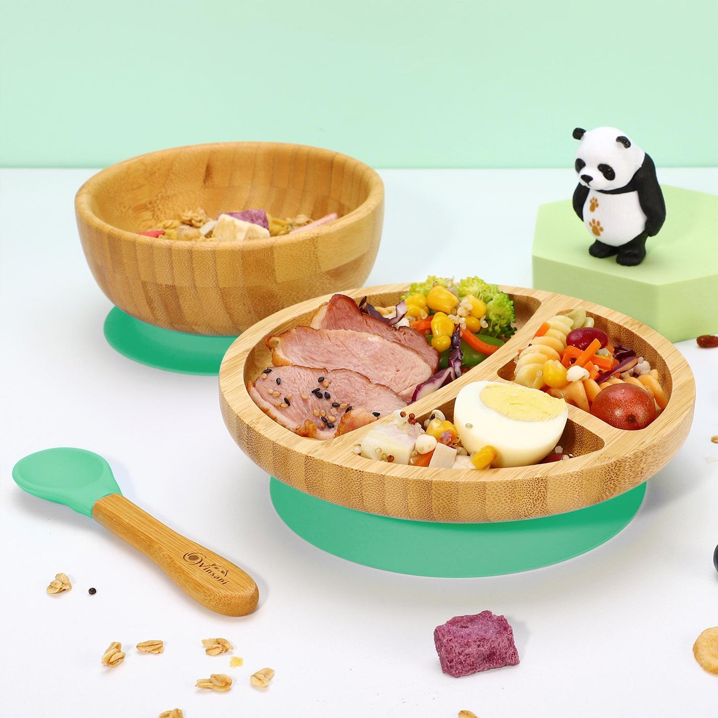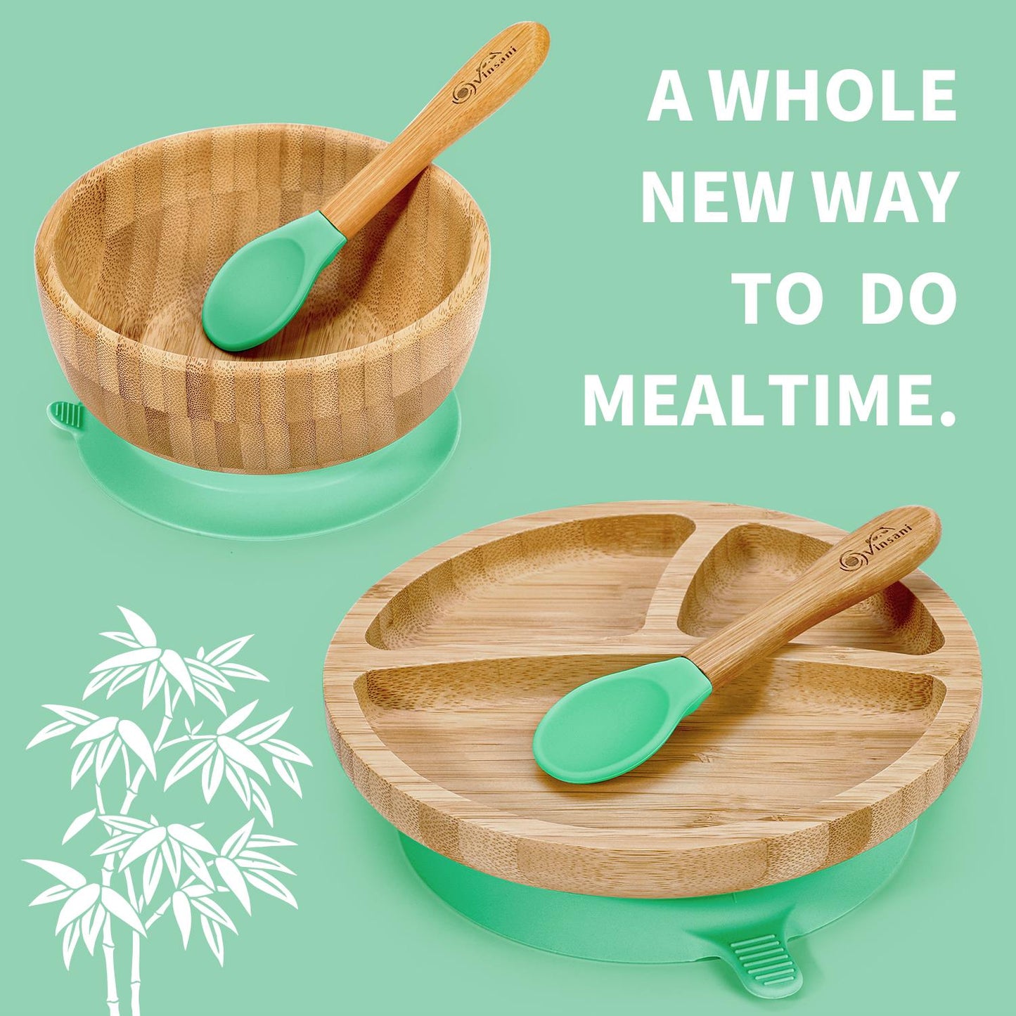 ALL-NATURAL BAMBOO: Made from all-natural hypoallergenic bamboo and food-grade silicone to protect your child from BPA, phthalates, and other toxins.